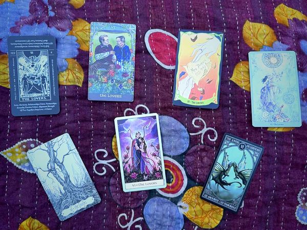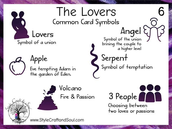 The traditional images of this card show a choice between two lovers, while sometimes that is the case, it doesn’t necessarily mean a choice between two people, sometimes we need to decide where and how much of our energy will be focused on any one thing. There is a balance that has to occur in life to follow your passions and to keep loved ones and friends close and a balance that also ensures your passion doesn’t become an obsession. Sometimes this card can represent the choice between doing what is socially acceptable, and taking the path that you truly desire.